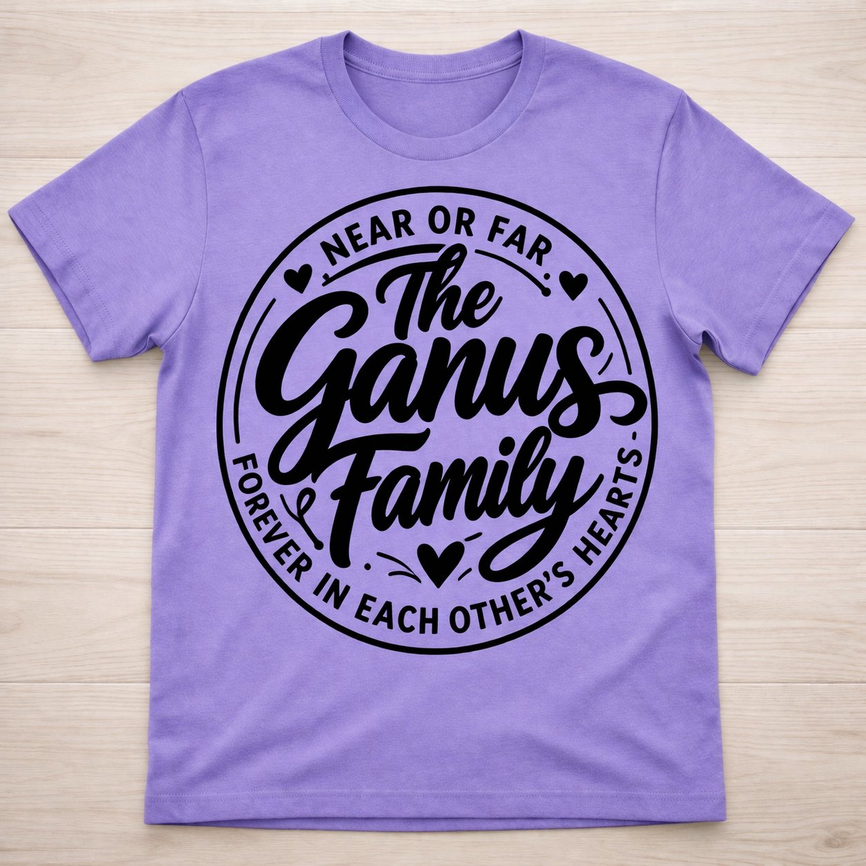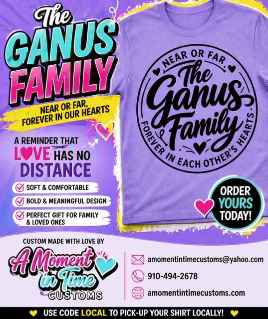 Our Ganus Family Shirt is more than just a teeβ¦ itβs a statement of unity, love, and lasting connection. Featuring a bold, beautifully designed circular graphic with the message βNear or Far, Forever in Each Otherβs Hearts,β this shirt is perfect for family gatherings, reunions, or simply showing pride in your family bond.