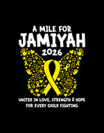 Our βA Mile for Jamiyah 2026β shirt is more than just apparelβitβs a symbol of love, strength, and unwavering support for children bravely fighting cancer. Featuring a bold yellow awareness ribbon surrounded by uplifting, child-inspired elements, this design represents courage, resilience, and the power of community.